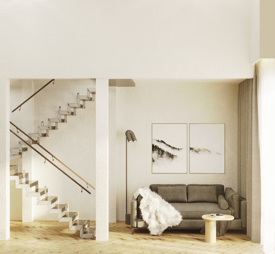 Высота потолков 3 м. Создайте уникальную атмосферу, украшая стены по вашему вкусу, или просто наслаждайтесь ощущением свободы и простора.