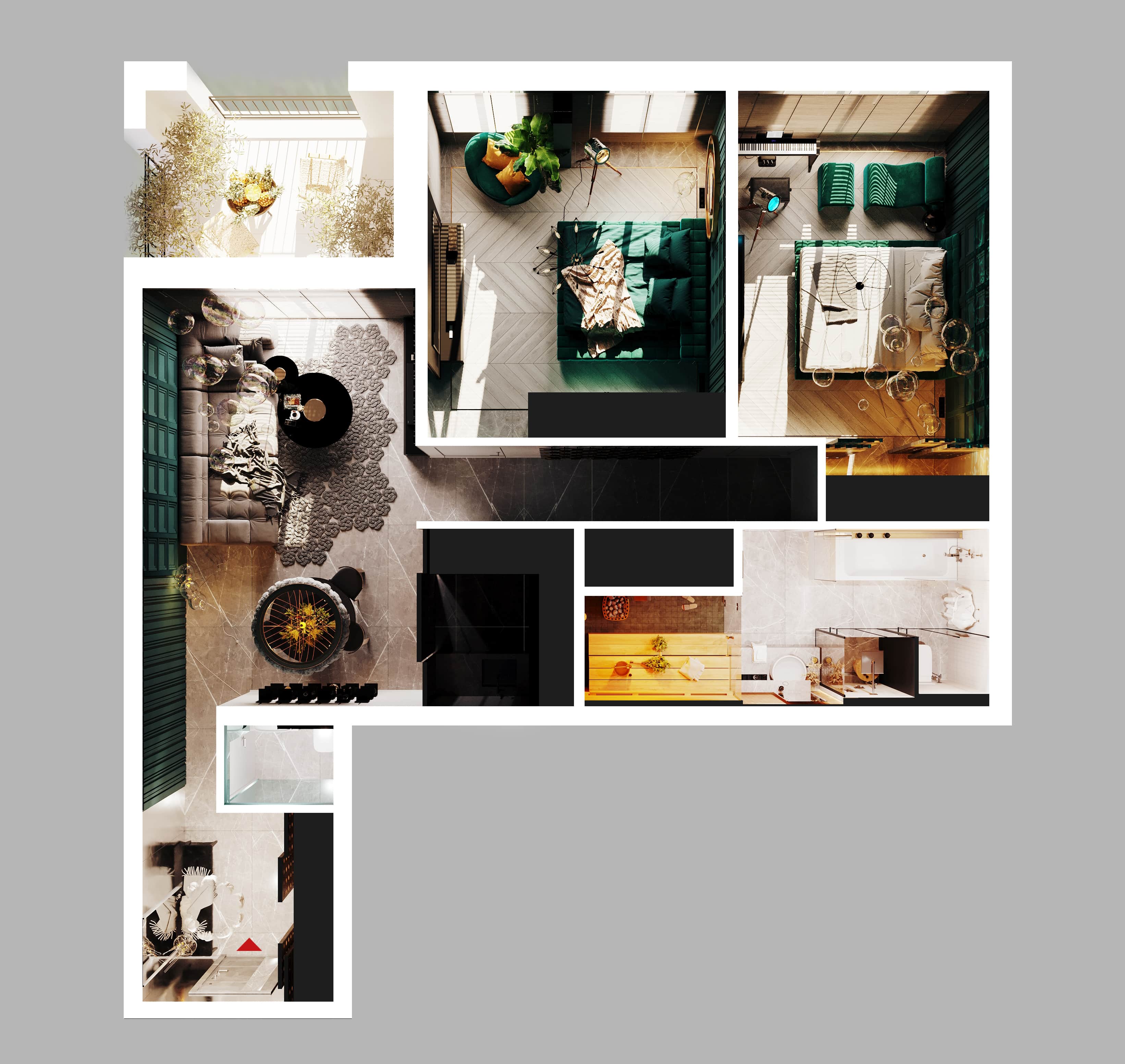 - Собственная терраса и сауна в каждой квартире;